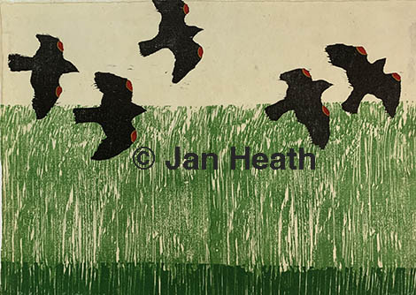 Red-Winged Blackbirds woodcut mounted size 16x20 $145.