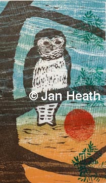 Sleepy Owl II woodcut 14x10 matted size $65.